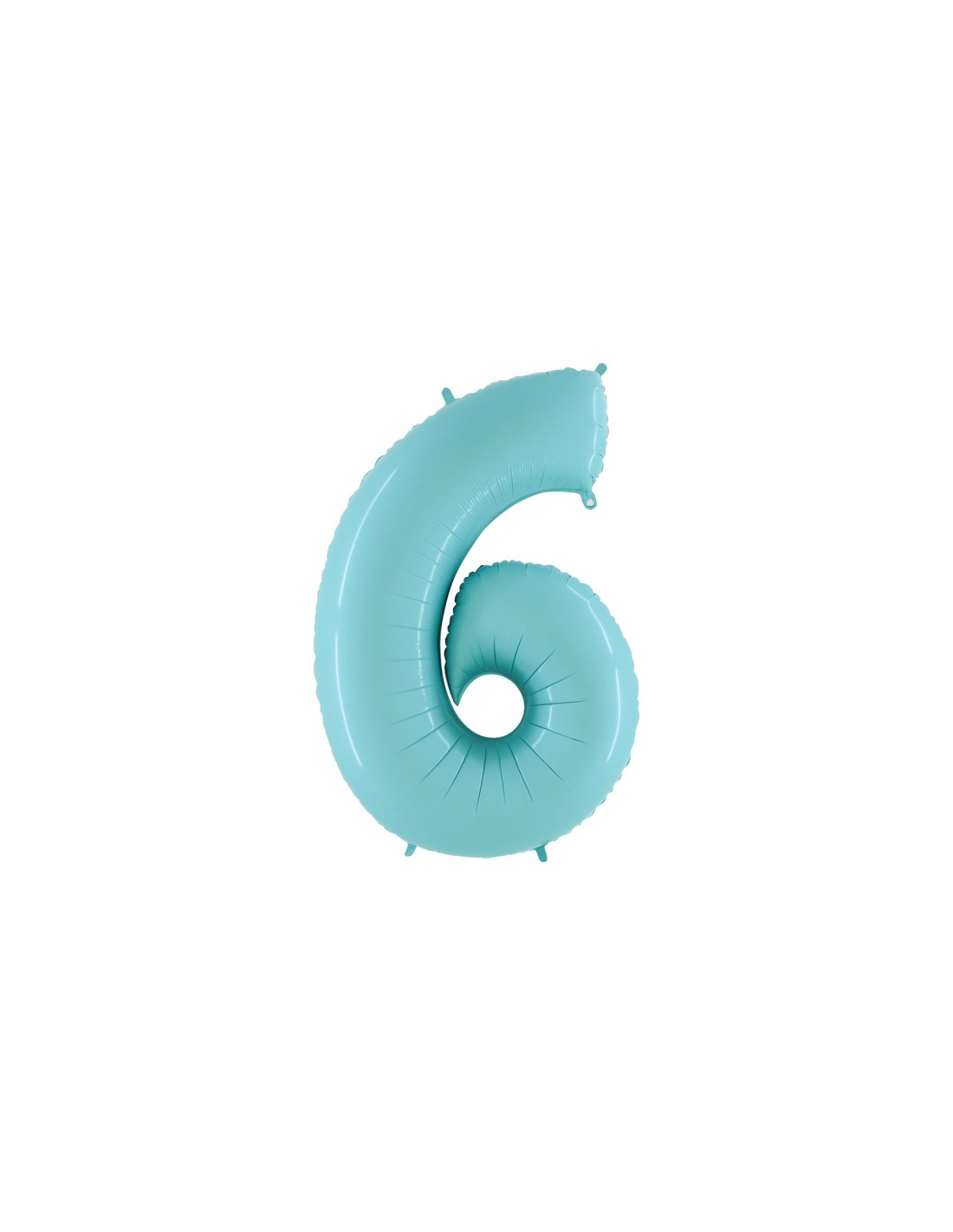 Globo del número 6 en azul. Ideal para celebrar y decorar tu fiesta de cumpleaños. Completa tu decoración temática en nuestra sección e globos de cumpleaños.
