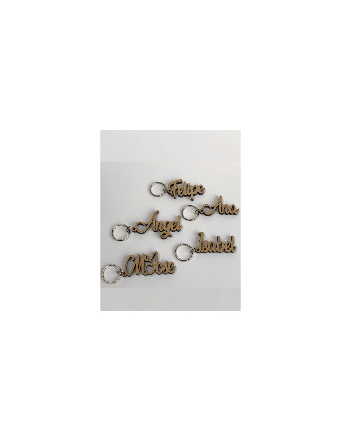 Llavero con nombre de madera para usar en cualquier evento como marcasitios. Un detalle para tus invitados que podrán llevarse de recuerdo.