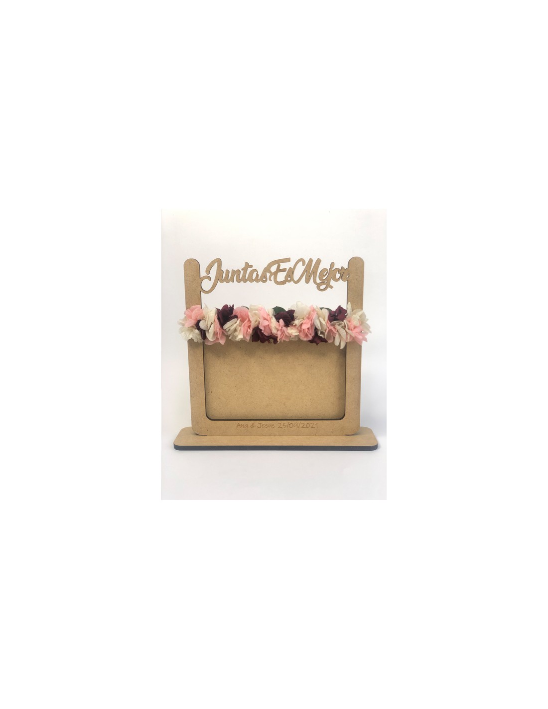 No olvide guardar su personalización para poder añadirla al carritoMarco de madera con texto personalizado, decorado con flores preservadas. Un regalo ideal para los siguientes, padres, testigos, amigas...
