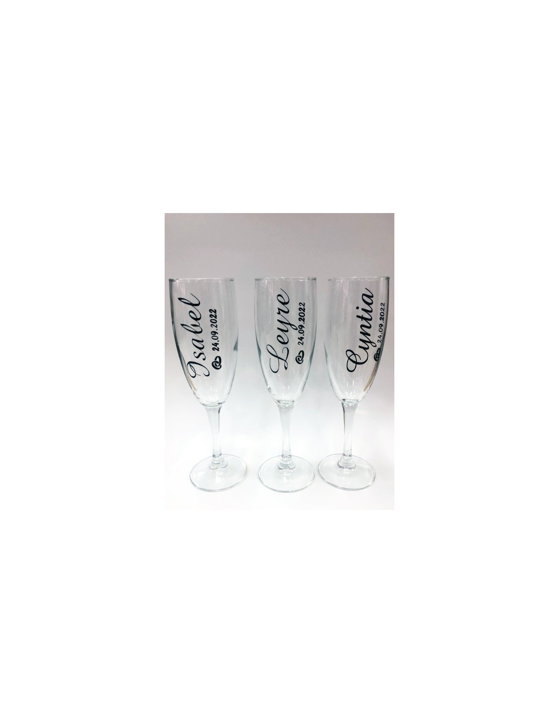 No olvide guardar su personalización para poder añadirla al carritoCopa de champán o cava personalizadas con el nombre de la dama de honor, alianzas y fecha de la boda. Un detalle para un brindis especial.